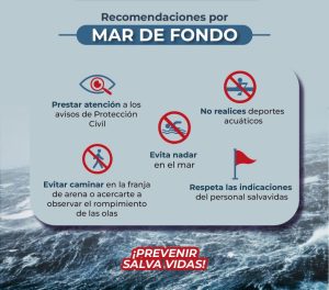 Este fenómeno provocará olas de entre 2.0 y 2.5 metros de altura, así como corrientes de retorno (resaca) y rompientes intensas en zonas de playa.