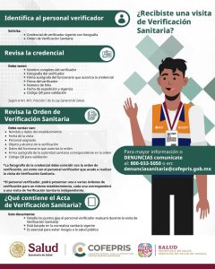 La lista oficial de verificadores sanitarios puede consultarse en el portal institucional de la Comisión Federal para la Protección contra Riesgos Sanitarios (Cofepris).