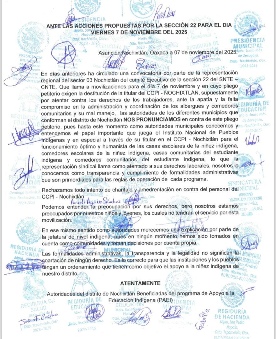 Asunción Nochixtlán, Oaxaca a 07 de noviembre del 2025. En días anteriores ha circulado una convocatoria por parte de la representación