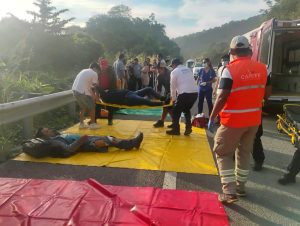 Elementos de seguridad estatal y federal, coordinados con personal de auxilio de Caminos y Puentes Federales de Ingreso y Servicios Conexos (Capufe), organizan el traslado de las personas lesionadas a los hospitales de la zona, así como, implementan un operativo vial para el resguardo de las y los automovilistas que transitan esa carretera federal.