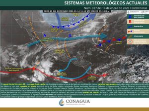 De acuerdo con el pronóstico del tiempo emitido por la Comisión Nacional del Agua (Conagua), la masa de aire frío que impulsa a este sistema reforzará el viento del norte, dando lugar a uno nuevo de fuerte a intenso; así como oleaje elevado en aguas del Golfo de Tehuantepec.
