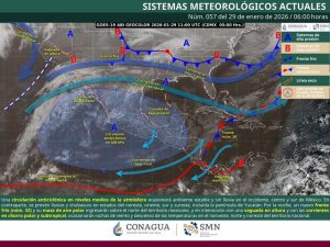 Por otra parte, el viento del norte se mantendrá con rachas fuertes en el oriente del Istmo de Tehuantepec y ligero a moderado en el resto de la entidad, favoreciendo tolvaneras durante la tarde.