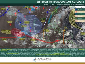 Oaxaca de Juárez, Oax. 18 de septiembre de 2025.- La Coordinación Estatal de Protección Civil y Gestión de Riesgos (CEPCyGR) informa que, continuará una situación de inestabilidad atmosférica en gran parte del estado, especialmente en el oriente del Istmo de Tehuantepec y Sierra Sur, donde puede haber áreas de tormentas, actividad eléctrica y chubascos costeros.