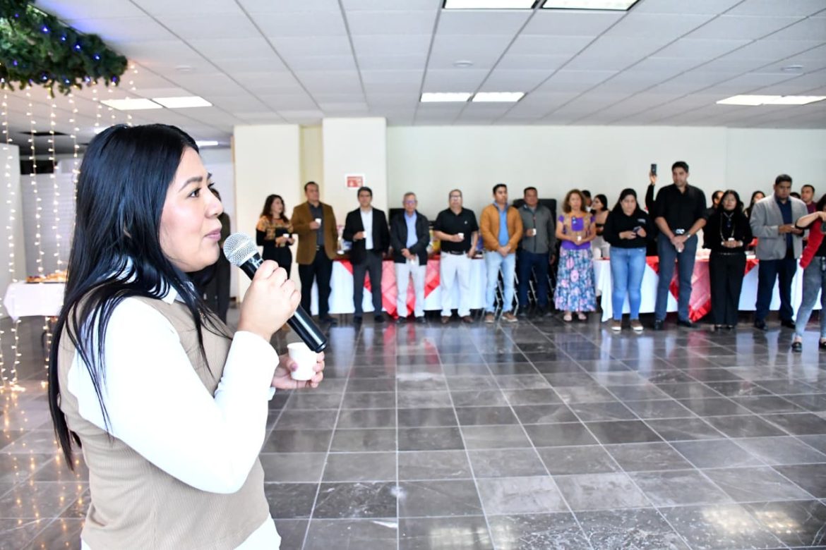San Raymundo Jalpan, Oax., a 15 de diciembre de 2025.- En un ambiente de cercanía, alegría y espíritu navideño, la presidenta de la Junta de Coordinación Política (Jucopo), diputada Tania Caballero Navarro, presidió el tradicional brindis de Navidad y Fin de Año de las y los trabajadores del Congreso del Estado, como una muestra de reconocimiento, gratitud y aprecio.