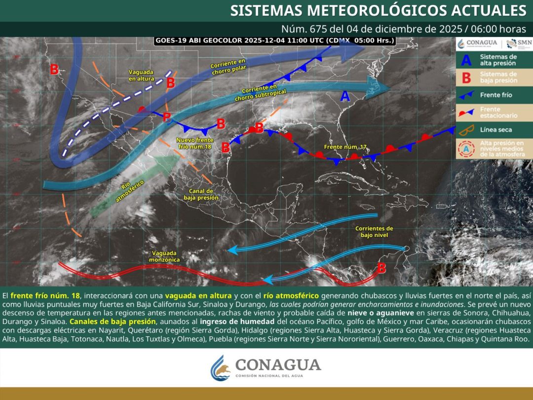 Por otra parte se mantiene en vigilancia la posible llegada de un nuevo frente frío a inicios de la próxima semana, el cual aún se encuentra en proceso de formación (frontogénesis).