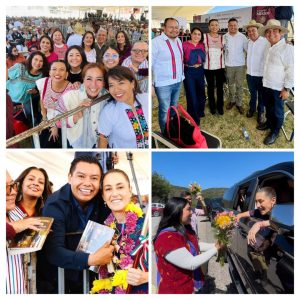 “Gracias Presidenta por todo el cariño que le ha demostrado a las y los oaxaqueños, por mirar hacia nuestras comunidades, pueblos indígenas y afromexicanos que durante décadas no fueron tomados en cuenta, pero que, con la llegada de la Cuarta Transformación con el expresidente Andrés Manuel López Obrador se da prioridad a quienes estuvieron olvidados y con Sheinbaum Pardo, se da continuidad al desarrollo regional”, enfatizaron.