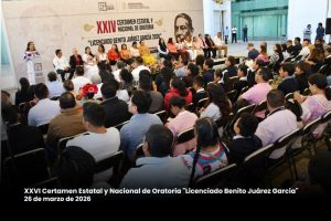 Enfatizó que este certamen, inspirado en el legado del “Benemérito de las Américas”, permite a las y los participantes consolidar su capacidad de argumentación, y asumir con responsabilidad su participación en la vida pública.