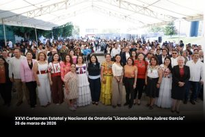 San Raymundo Jalpan, Oax., a 26 de marzo de 2026.-* El Congreso del Estado de Oaxaca inauguró la etapa estatal de la edición XXIV del Certamen Estatal y Nacional de Oratoria “Licenciado Benito Juárez García 2026”, en la que participan 203 niñas, niños y jóvenes provenientes de las ocho regiones de la entidad, con el propósito de impulsar la expresión, el pensamiento crítico y la participación de la niñes y juventudes en ejercicios que fortalezcan su formación integral.