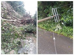 • Un derrumbe ocasionó la caída de dos postes, por lo que personal de la CFE se encuentra trabajando en la zona para restablecer el paso