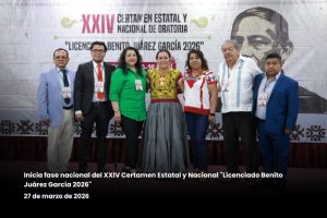 San Raymundo Jalpan, Oax., a 27 de marzo de 2026.-* En el Congreso del Estado dio inicio la fase nacional de la edición XXIV del Certamen Estatal y Nacional de Oratoria “Licenciado Benito Juárez García 2026”, con el objetivo de fomentar la libre expresión, el pensamiento crítico y la participación de las juventudes en los asuntos públicos a través del arte de la palabra.