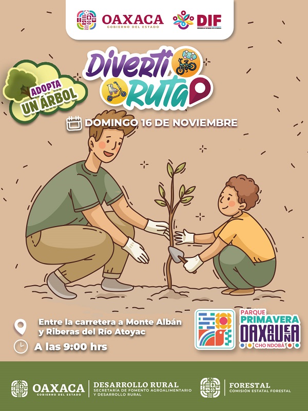 Oaxaca de Juárez, Oax. 13 de noviembre de 2025.- Este domingo 16 de noviembre, el Parque Primavera Oaxaqueña Cho Ndobá será el escenario de la edición 45 de la Diverti Ruta, iniciativa del Sistema para el Desarrollo Integral de la Familia (DIF) Oaxaca para fomentar en las infancias y adolescencias, actividades lúdicas, recreativas y deportivas.
