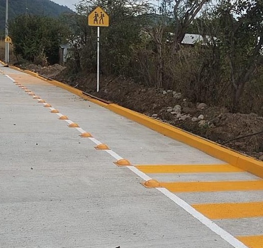 • Con una inversión superior a los 2 millones 973 mil pesos, se construyeron mil 800 metros de pavimento y se colocó pintura y señalética vial para el cruce de peatones