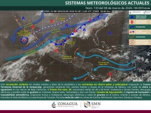 Oaxaca de Juárez, Oax., 8 de marzo de 2026.- La Coordinación Estatal de Protección Civil y Gestión de Riesgos (CEPCyGR) informa que continuarán las condiciones de lluvias ligeras con intervalos de chubascos, especialmente en la porción norte del estado.