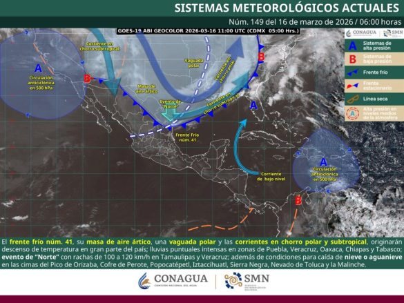 Lo anterior se debe a la influencia del frente frío número 41 y la masa de aire ártico asociada, los cuales interactuarán con una profunda vaguada polar.
