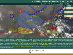 Oaxaca de Juárez, Oax. 21 de octubre de 2025.- La Coordinación Estatal de Protección Civil y Gestión de Riesgos (CEPCyGR) informa que, este martes, se prevén lluvias con chubascos aislados disminuidos, en comparación a días anteriores.