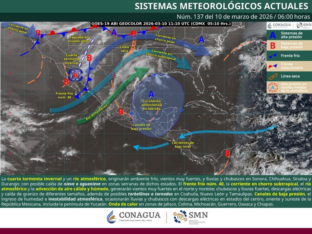 Lo anterior se debe a la presencia de un canal de baja presión ubicado sobre el interior del país, en combinación con la entrada de humedad proveniente del Océano Pacífico y Golfo de México.