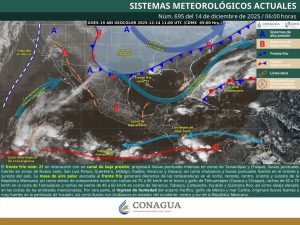 Asimismo, con el acercamiento de una masa de aire polar, el viento del norte se intensificará, especialmente en el oriente del Istmo de Tehuantepec, donde se esperan rachas localmente fuertes de entre 70 y 90 kilómetros por hora, principalmente en el tramo La Venta–La Ventosa. Además de oleaje elevado en aguas del Golfo de Tehuantepec.