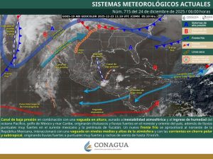 De acuerdo con el pronóstico del tiempo emitido por la Comisión Nacional del Agua (Conagua), estas condiciones son ocasionadas por un canal de baja presión que se mantiene sobre el oriente y sureste de la República Mexicana, en combinación con una vaguada en niveles medios de la troposfera, lo que favorece la entrada de aire húmedo proveniente del Mar Caribe y Golfo de México.