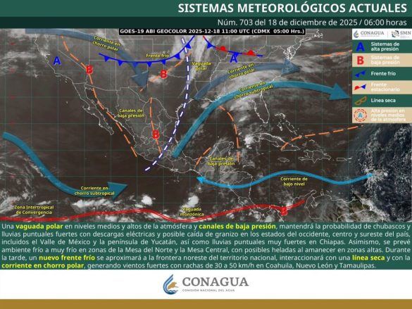 • Se vigila un frente frío débil que podría generar un ligero reforzamiento de aire frío en la entidad, a partir de este viernes