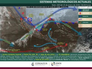 Asimismo, iniciará un evento de norte con rachas de viento de 90 a 100 kilómetros por hora en el oriente del Istmo de Tehuantepec, con mayor énfasis en el tramo carretero La Venta–La Ventosa.