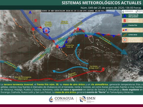 De acuerdo con el pronóstico del tiempo emitido por la Comisión Nacional del Agua (Conagua), esto es ocasionado por la masa de aire frío del frente frío número 30, el cual ha salido al Golfo de México y avanzará rápidamente hacia el sureste.