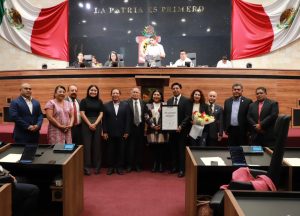 - La presidenta de la Jucopo, Tania Caballero Navarro, encabezó la entrega de esta distinción