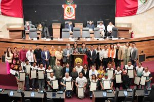 La entrega de esta distinción contó con la presencia de la presidenta de la Mesa Directiva, Eva Diego Cruz; de la diputada Cecilia Olivia Cruz Merlín; de las y los integrantes de la Junta de Coordinación Política (Jucopo), Dante Montaño Montero, Antonia Natividad Díaz Jiménez y Melina Hernández Sosa.
