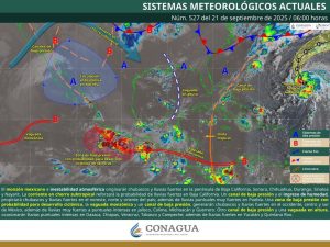 Oaxaca de Juárez, Oax. 21 de septiembre de 2025.-La Coordinación Estatal de Protección Civil y Gestión de Riesgos (CEPCyGR) informa que, se mantendrán lluvias con tormentas localmente fuertes a muy fuertes en la tarde-noche de este domingo en el Istmo de Tehuantepec, Costa, Sierra Sur, Cuenca del Papaloapan y Sierra de Flores Magón, con riesgo de visibilidad reducida por niebla y nubes bajas en zonas serranas.