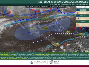 Por otro lado, dos frentes fríos se extienden sobre el noroeste y norte de México, sin efectos para el estado hasta el momento; no obstante, se mantiene en vigilancia uno de ellos, ya que podría aproximarse al sureste del país durante el fin de semana.