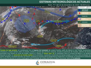Oaxaca de Juárez, Oax. 22 de diciembre de 2025.- La Coordinación Estatal de Protección Civil y Gestión de Riesgos (CEPCyGR) informa que se prevé un periodo de inestabilidad atmosférica sobre gran parte del sur y sureste del país, así como en la península de Yucatán, lo que ocasionará lluvias en algunas regiones del estado, con mayores acumulados en el norte y algunas zonas de la Sierra Sur.