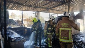 • Aunque no se reportan personas lesionadas, en el lugar se localizó el cuerpo de un canino calcinado y daños materiales