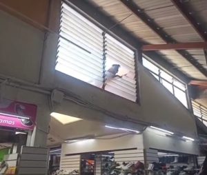 Gracias al oportuno reporte de locatarios del Mercado de Abasto y a la rápida respuesta de los Defensores Municipales en coordinación con Protección Civil Municipal, fue posible rescatar con éxito a un perro que se encontraba atrapado en el techo del área conocida como Zona Seca de este centro de comercio.