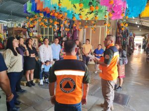 Asimismo, informó que en los próximos días continuará la toma de protesta en los mercados restantes, con el propósito de que todas las plazas comerciales cuenten con equipos organizados y capacitados para atender emergencias.
