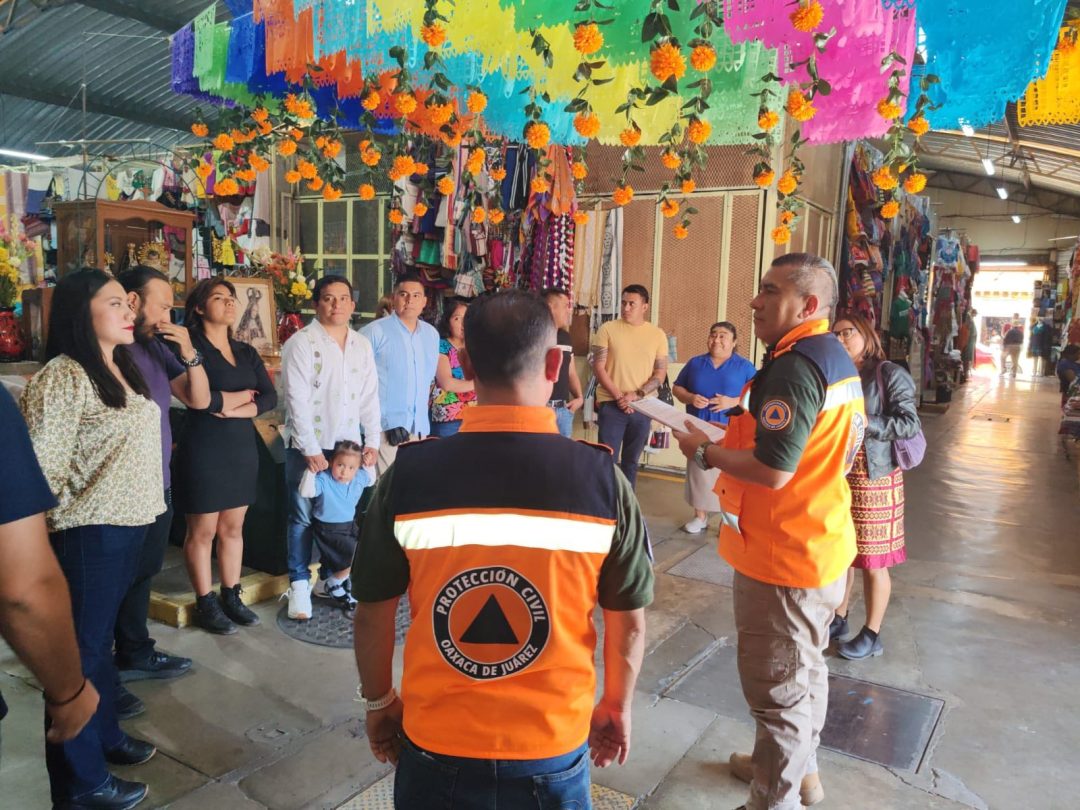 Oaxaca de Juárez, Oax., 22 de noviembre de 2025. Con el objetivo de fortalecer la cultura de la prevención y garantizar la seguridad en los centros de abasto de la ciudad, la Dirección de Protección Civil Municipal, adscrita a la Secretaría de Gobierno y Territorio de Oaxaca de Juárez, en coordinación con la Dirección de Mercados, llevó a cabo la toma de protesta de nuevas Unidades Internas de Protección Civil en diversos mercados de la capital.