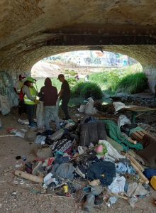 El Gobierno Municipal de Oaxaca de Juárez informa que en coordinación con personal de las Secretarías de Bienestar y Tequios Vecinales y de Seguridad Vecinal, se realizó el retiro de un campamento donde se acumulaban residuos, así como su recolección, con el objetivo de prevenir riesgos y evitar que, ante la temporada de lluvias, los desechos se dispersen en la zona.