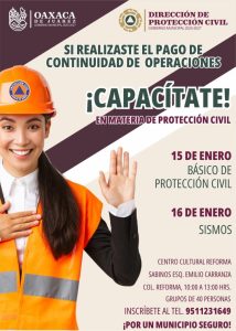 Oaxaca de Juárez, Oax., 09 de enero de 2025.– Con el objetivo de fortalecer la cultura de la prevención y elevar los estándares de seguridad en los establecimientos comerciales, la Secretaría de Gobierno y Territorio, a través de la Dirección de Protección Civil de Oaxaca de Juárez, lleva a cabo capacitaciones dirigidas a propietarias y propietarios de negocios del municipio.