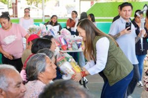 Durante esta jornada, bajo el lema “Nutrir con amor”, se realizaron entregas de dotaciones alimentarias del programa “Itacate de mi corazón”, despensas emergentes y lentes para vista cansada, beneficiando a cientos de vecinas y vecinos de Guadalupe Victoria, Dolores, Santa Rosa Panzacola y San Juan Chapultepec.