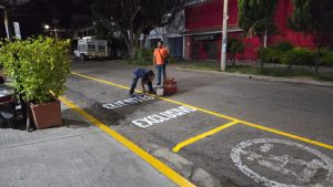 Para fortalecer la organización vial y garantizar espacios accesibles e incluyentes, la Secretaría de Gobierno y Territorio, a través de la Dirección de Mercados en coordinación con la Dirección de Movilidad, realizó la pinta de cajones de carga y descarga, así como de espacios exclusivos para personas con discapacidad en diversos mercados públicos de la ciudad.