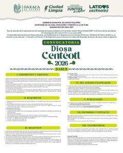 Las interesadas podrán consultar las bases, requisitos y fechas en la convocatoria completa disponible a través de los canales oficiales del Municipio de Oaxaca de Juárez.