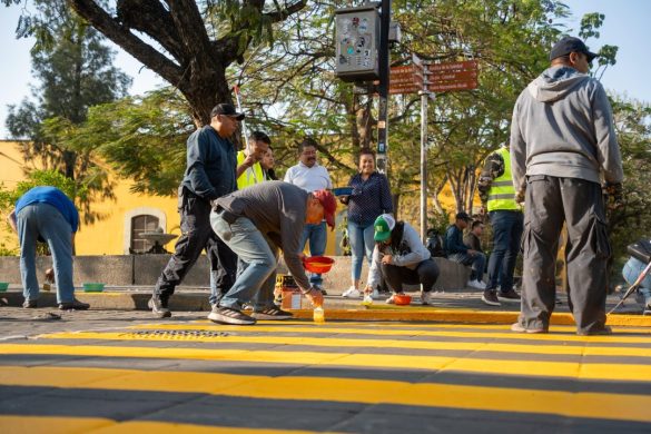 Oaxaca de Juárez, Oax., 19 de abril de 2025.- En un esfuerzo conjunto por embellecer y dignificar los espacios públicos del Centro Histórico, el Municipio de Oaxaca de Juárez llevó a cabo un tequio vecinal en las calles de Avenida Independencia, al cruce con Cinco de Mayo y Reforma, donde se realizaron labores de limpieza general y pintado de cruces viales.