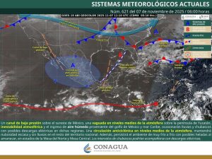 Por otro lado, se mantiene en vigilancia un nuevo frente frío que se desplazará rápidamente a lo largo de la vertiente del Golfo de México, durante el sábado y domingo.