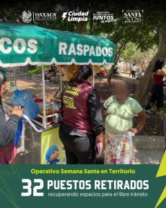 Oaxaca de Juárez, Oax., a 7 de abril del 2026._. Con el objetivo de mantener el orden, la seguridad y la adecuada movilidad en el Centro Histórico, la Dirección de Comercio en Vía Pública adherida a la Secretaría de Gobierno y Territorio Municipal intensificó las acciones de supervisión y ordenamiento durante el periodo de Semana Santa.