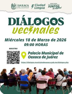 Oaxaca de Juárez, Oax., 17 de marzo de 2026.– Con el objetivo de fortalecer la participación ciudadana y construir soluciones conjuntas para la ciudad, el Gobierno Municipal de Oaxaca de Juárez que preside Ray Chagoya invita a la ciudadanía a participar en los Diálogos Vecinales, un espacio de encuentro para compartir ideas, escuchar propuestas y trabajar de manera coordinada por el bienestar de la capital.