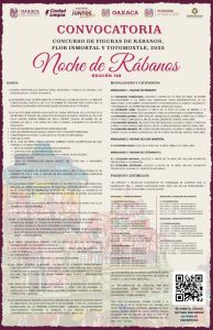 Oaxaca de Juárez, Oax., 12 de diciembre de 2025.— El Gobierno Municipal de Oaxaca de Juárez, en coordinación con el Gobierno del Estado, recuerda que faltan pocos días para el cierre de inscripciones del tradicional Concurso de Figuras de Rábanos, Flor Inmortal y Totomoxtle 2025, una de las expresiones culturales más emblemáticas de la capital y parte fundamental de la 128 edición de la Noche de Rábanos.