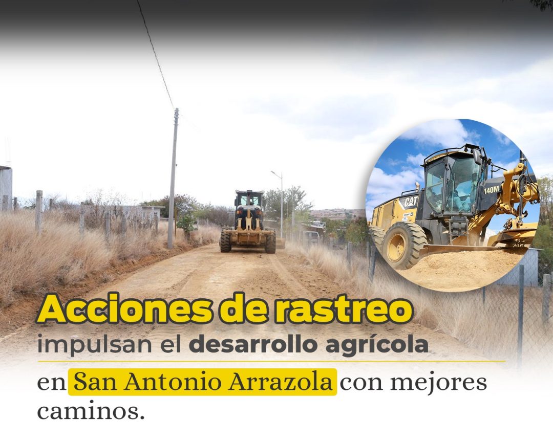 Santa Cruz Xoxocotlán, Oax., 18 de ene.- Don Agustín Ramírez, presidente del Consejo de Vigilancia de San Antonio de Arrazola, reconoció el apoyo brindado por la presidenta municipal de Santa Cruz Xoxocotlán, Nancy Benítez Zárate para mejorar los caminos cosecheros de la comunidad, a través de acciones de rastreo.