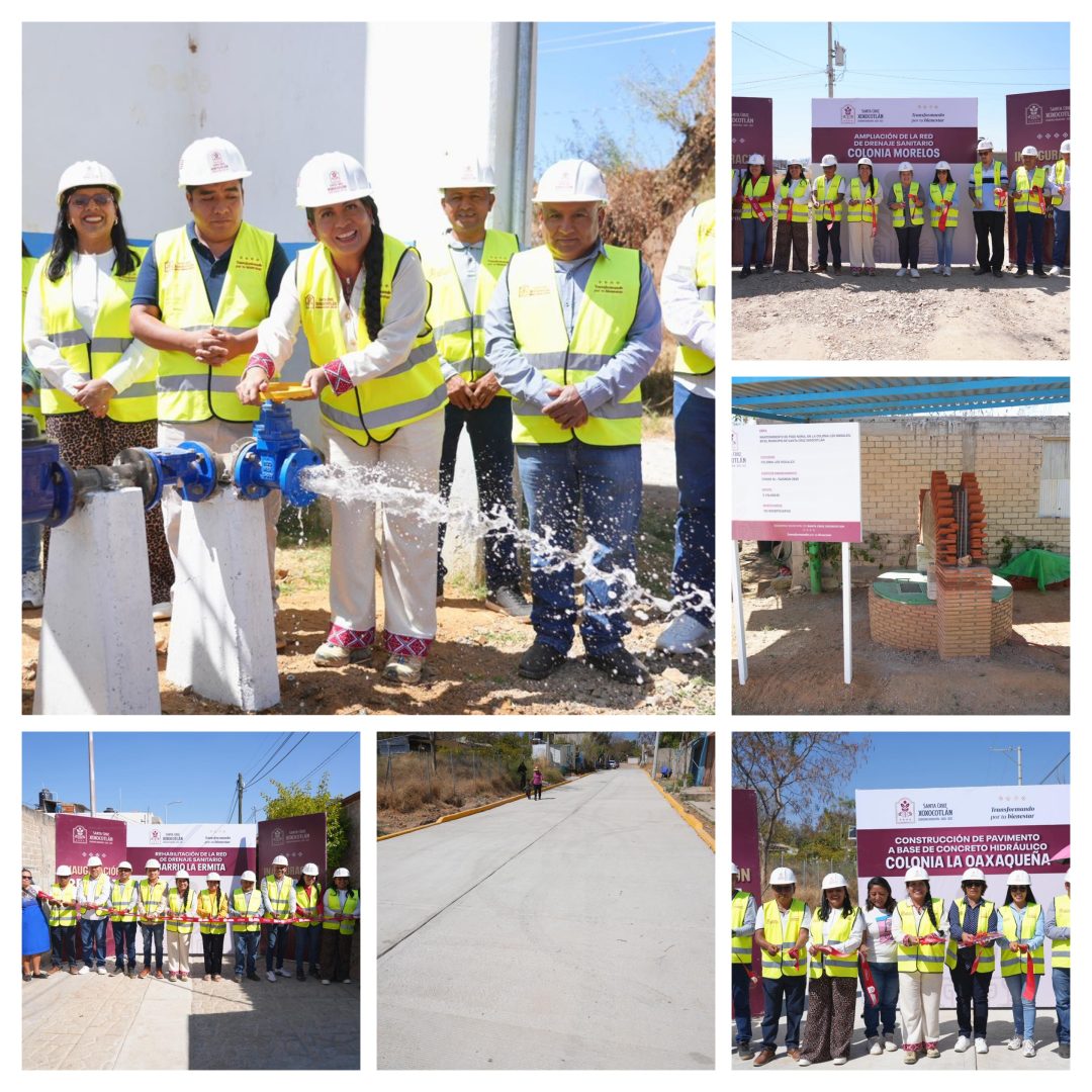 Santa Cruz Xoxocotlán, Oax., 13 de feb.– El Ayuntamiento de Santa Cruz Xoxocotlán realizó una jornada de entrega de obras que beneficia directamente a 832 habitantes para mejor la distribución de agua potable, la salud y la movilidad.
