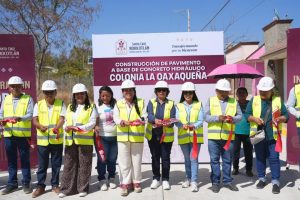 El cierre de esta jornada tuvo lugar en la colonia La Oaxaqueña, donde se inauguró la pavimentación con concreto hidráulico de la Calzada del Panteón, una obra que garantiza durabilidad y una mejor conectividad para la zona.