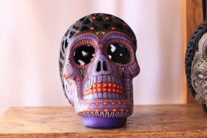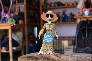 “Queremos compartir con personas de todas partes del estado, del país y del mundo, el arte que realizamos es con mucho esfuerzo, cariño y en esta ocasión, con respeto a los fieles difuntos”, explica Jesús Jiménez Hernández, artesana y presidenta del Comité del Tianguis Artesanal de Arrazola.