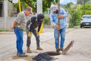 A través de la Coordinación de Drenaje y Desazolve, adscrita a la Dirección de Servicios Municipales, se han efectuado trabajos de desazolve manual y con camión vactor en zonas donde se presentó acumulación de residuos, así como limpieza de pozos de visita, verificación física del funcionamiento del drenaje, reparaciones menores en tuberías y colocación de brocales y tapas.