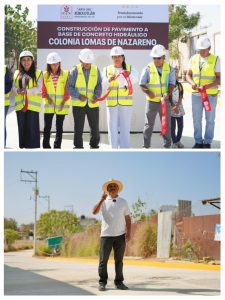 Durante el acto, en Lomas de Nazareno, el colono Porfirio López Martínez destacó que la obra de pavimentación con concreto hidráulico fue solicitada por tres décadas sin obtener respuesta y reconoció que su realización representa un logro importante para la comunidad.